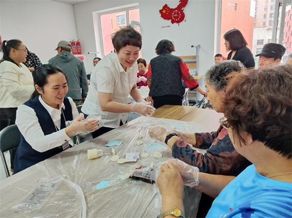 随后,吉林银行通化新站支行将活动延伸至社区,一场热闹的DIY美食制作活动在社区活动中心拉开帷幕。工作人员提前备好山楂糕、月饼、桂花糕的制作原料与工具,与社区老年居民分组协作,手把手指导大家揉面团、调馅料、压模成型。从称量食材到装饰成品,老人们热情高涨,积极参与每一个环节,现场弥漫着食材的香气与欢乐的氛围。“自己动手做的月饼就是不一样,和年轻人一起忙活,感觉自己也年轻了好几岁!”60岁的社区居民李奶奶举着刚做好的月饼,脸上洋溢着幸福的笑容。