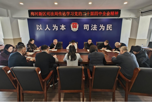 近日,梅河新区(梅河口市)司法局召开专题会议,传达学习贯彻党的二十届四中全会精神,研究部署贯彻落实举措,引领全局干部将思想和行动统一到全会部署上来。
